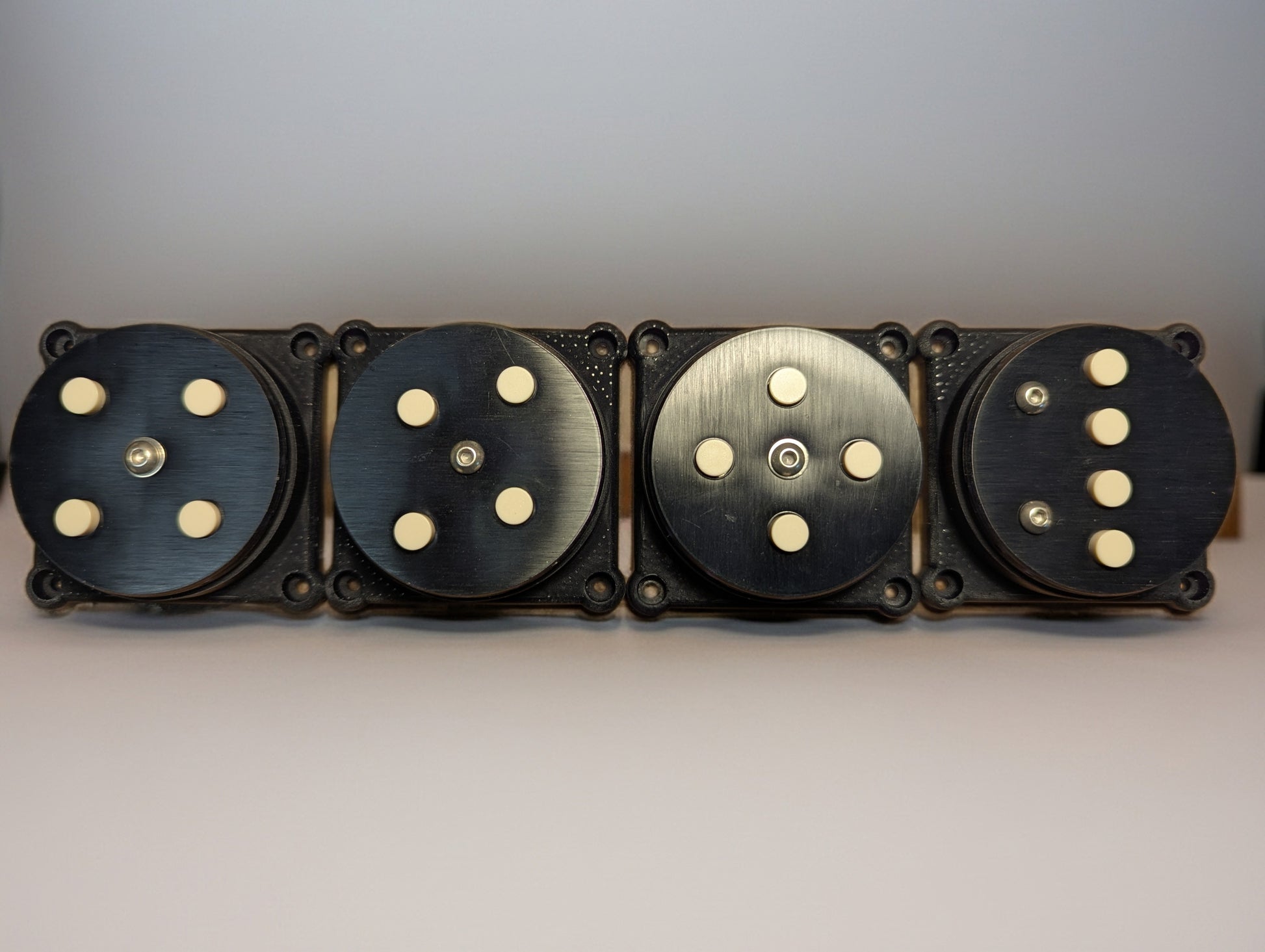 The buttons are mechanically all the same, but visually different styles. To keep my inventory somewhat sane, your color of button will be randomly selected based on what is available in the pattern you have picked.